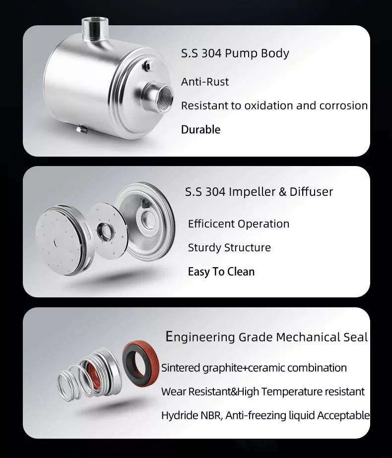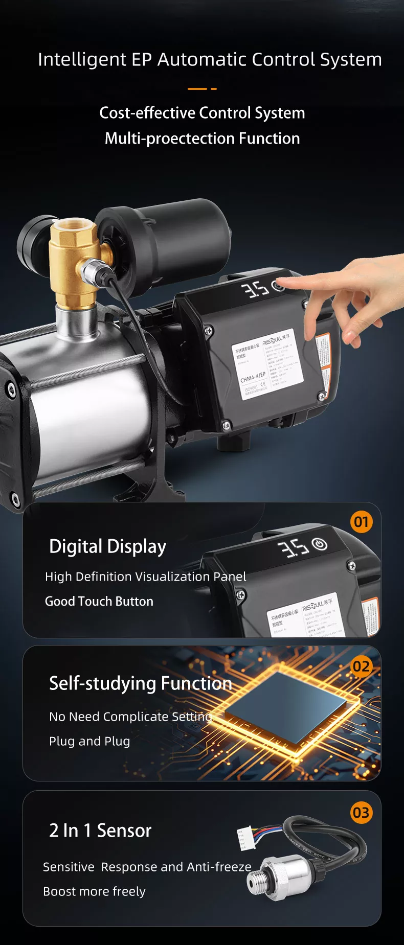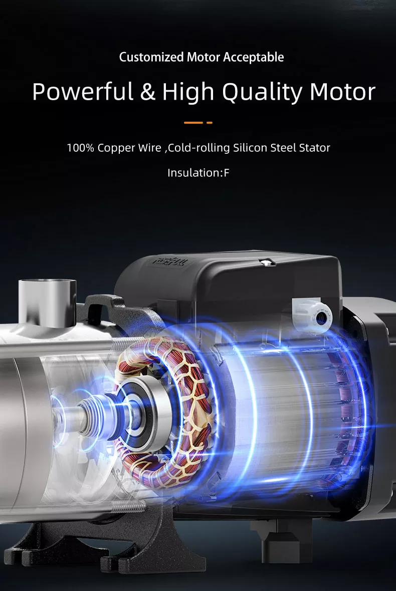 1. Daugiapakopis išcentrinis siurblys yra vertikali konstrukcija su mažu pėdsaku. Siurblio sunkio centras sutampa su siurblio pėdos centru, todėl jis veikia sklandžiai, turi mažai vibracijos ir turi ilgą laiką.