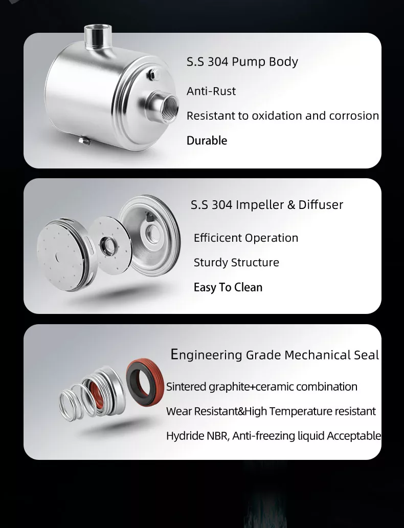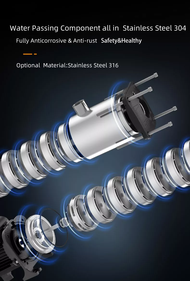 2. Tvirta konstrukcija: mūsų daugiapakopis siurblys pagamintas iš aukščiausios kokybės medžiagų, kurios užtikrina ilgalaikį patikimumą ir minimalius priežiūros reikalavimus, sutaupydami laiko ir pinigų.