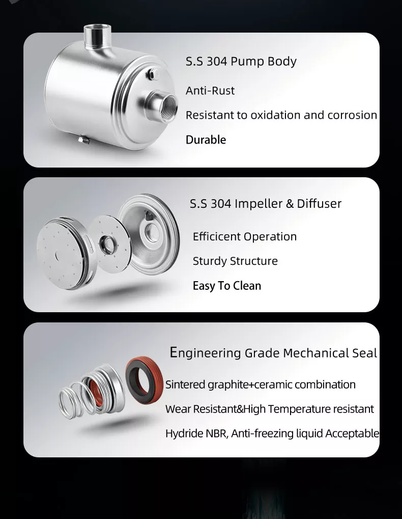3. Universalus pritaikymas: nesvarbu, ar reikia padidinti vandens slėgį pastatuose, drėkinimo sistemose ar pramoniniuose procesuose, šis siurblys yra pakankamai universalus, kad lengvai patenkintų įvairius poreikius.