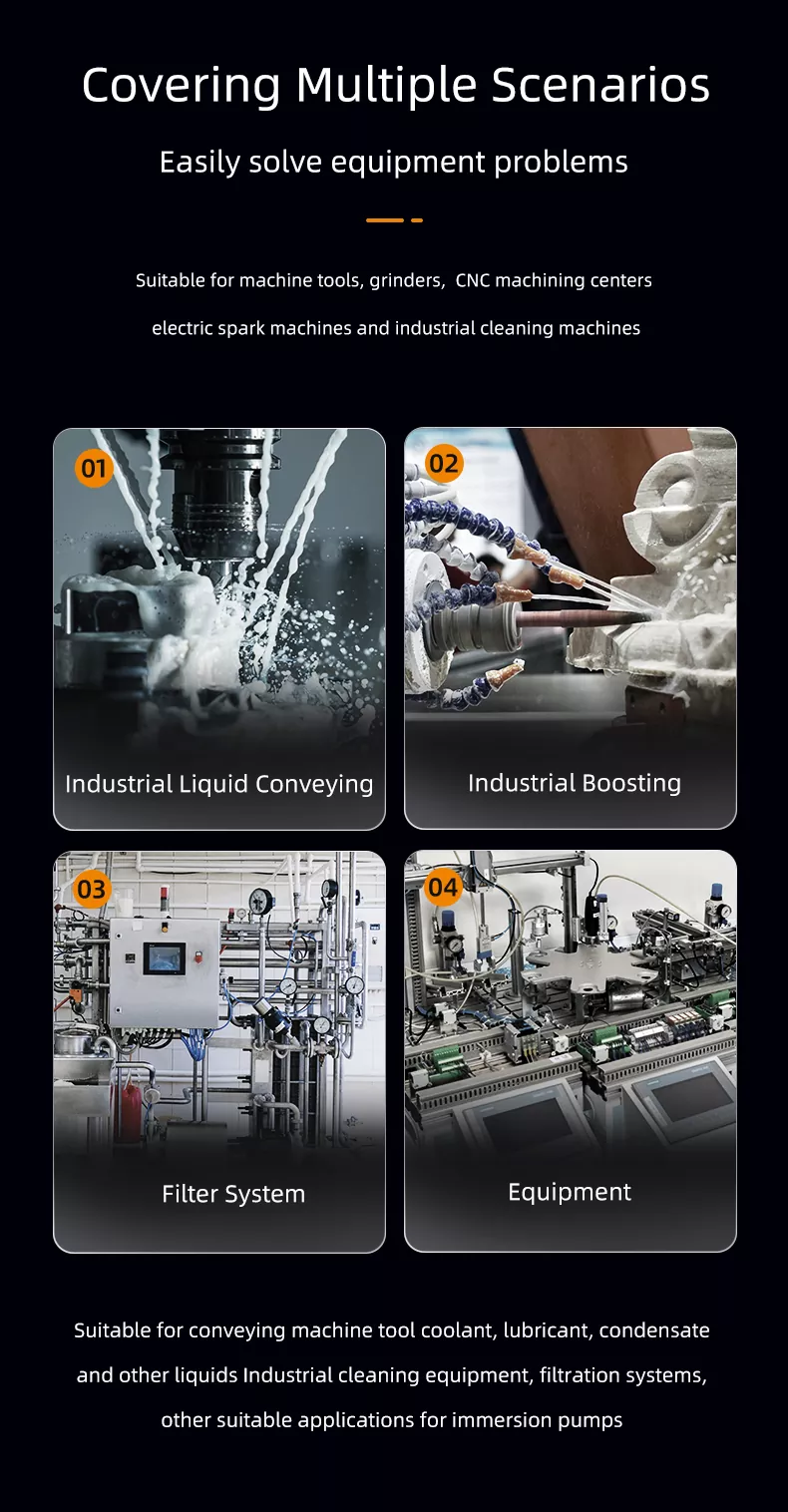 Toliau pateikiamas CHV serijos įvadas. CHV panardinamasis daugiapakopis išcentrinis siurblys, taip pat žinomas kaip panardinamasis siurblys arba mašinos siurblys, naudojamas staklių aušinimo skysčiui, tepalams, kondensato vandens pernešimui, pramoninei valymo įrangai, filtravimo sistemoms ir kitoms reikmėms, tinkamoms naudoti povandeniniu siurbliu. Puikiai tinka integruoti su staklėmis, šlifavimo staklėmis, CNC apdirbimo centrais, EDM staklėmis, pramoninėmis valymo staklėmis ir kita įranga.